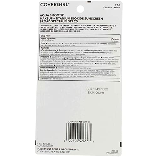 CoverGirl Aquasmooth SPF 20 Compact Foundation, 730 Classic Beige, 0.4 Ounce