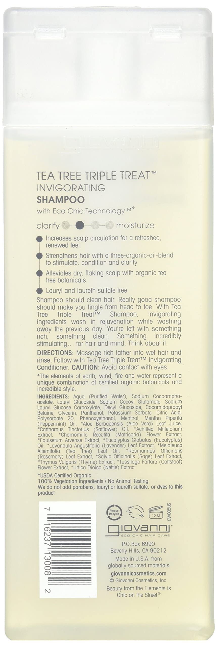 GIOVANNI Tea Tree Triple Treat Invigorating Shampoo – Cooling Peppermint, Eucalyptus & Rosemary, Helps Strengthen & Rejuvenate Hair & Scalp, Salon Quality, Paraben Free – 8.5 oz (1 Pack)