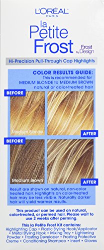 La Petite Frost is ideal for short hair or for adding a few face-framing highlights. The salon-inspired cap and hook method guides the placement of your highlights, allowing you to choose either a bold or precise look. The conditioning shampoo helps leave hair silky to the touch and shiny. The special non-drip formula is easy to mix and apply.