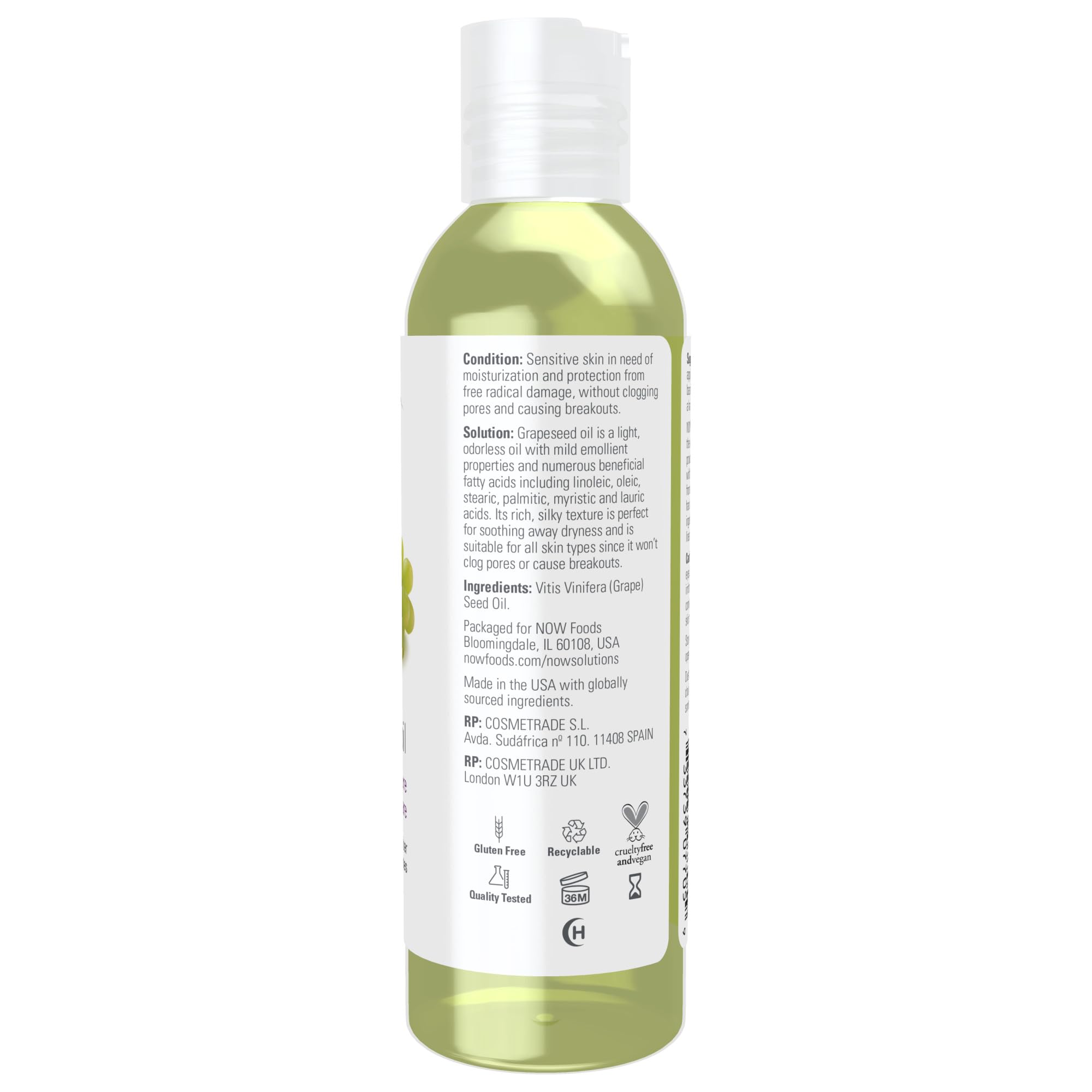 NOW Solutions, Grapeseed Oil, Skin Care for Sensitive Skin, Light Silky Moisturizer for All Skin Types, 4-Ounce