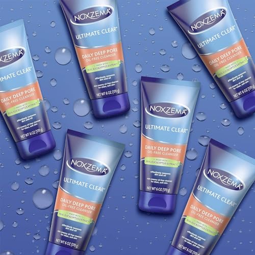 Noxzema Ultimate Clear Daily Deep Pore Oil-Free Cleanser for Soft, Smooth Skin - Noxzema Daily Face Wash for Women and Men, Noxzema Facial Cleanser for Acne Prone Skin, 6 Oz Ea (Pack of 6)