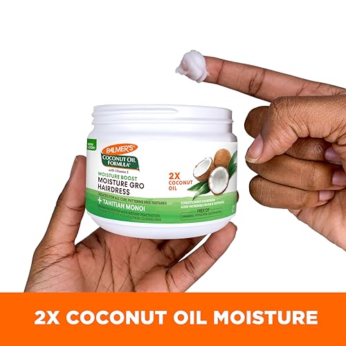 Palmer?s Coconut Oil Formula Moisture Boost system restores hair experiencing dryness or damage with natural reparatives that instantly and deeply lock in moisture from root to tip, visibly improving your hair?s condition after each use. This coconut oil rich conditioning hairdress locks in moisture to help minimize breakage and softens to improve comb through, while leaving an incredible shine. Perfect for daily use, relieves tight itchy scalp.