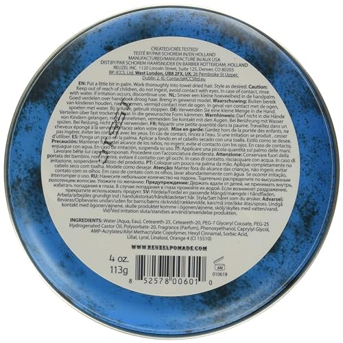 REUZEL Blue Pomade, Strong Hold, Water Soluble, Vanilla Wood, 4 Oz