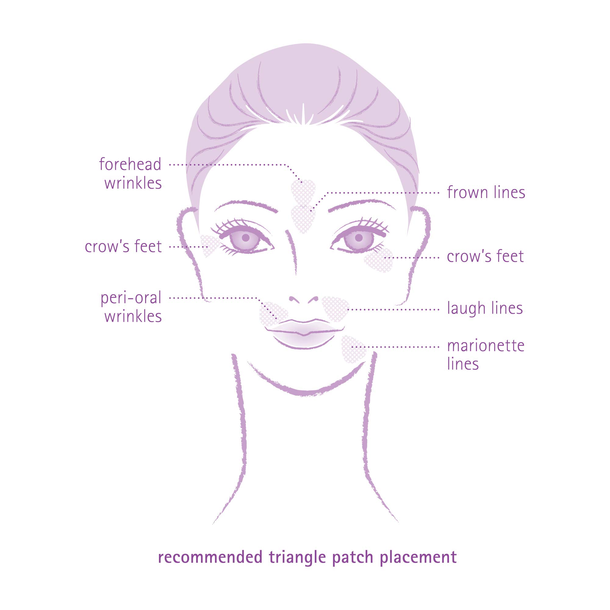 - Includes 45 triangle shaped facial patches; Targets forehead wrinkles, frown lines, crow?s feet, laugh lines, lines around the mouth, upper lip and marionette lines