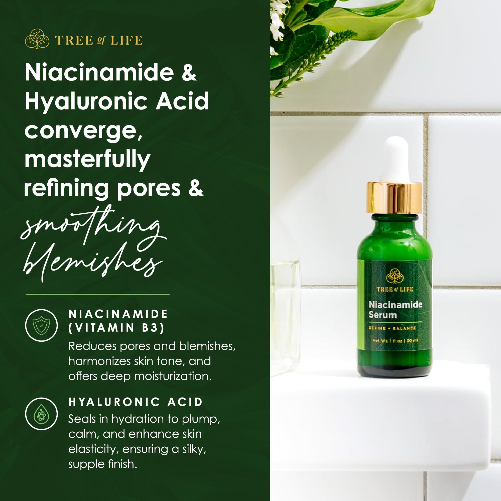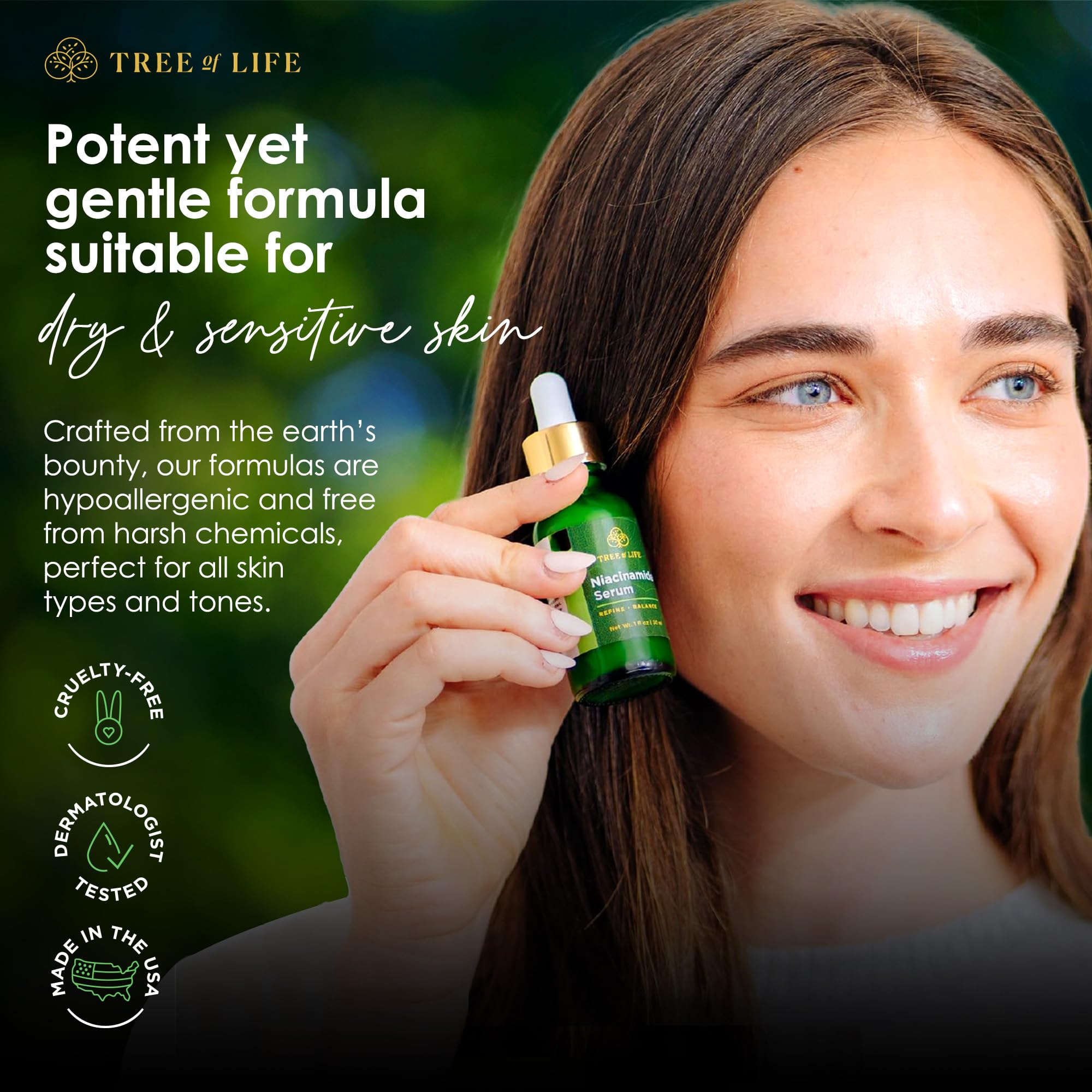 Tree of Life Niacinamide Vitamin B3 Serum, Hydrating Face Oil for Dark and Age Spots, Tightens Pores, Facial Serums for Sensitive Skin Care with Hyaluronic Acid and Vitamin E, 2 Fl Oz