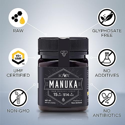 Kiva Raw Manuka Honey, Certified UMF 15+ | MGO 514+ | 100% Pure Genuine New Zealand (8.8oz/250g Bottle) | Non-GMO | Traceable | UMF & MGO Certified