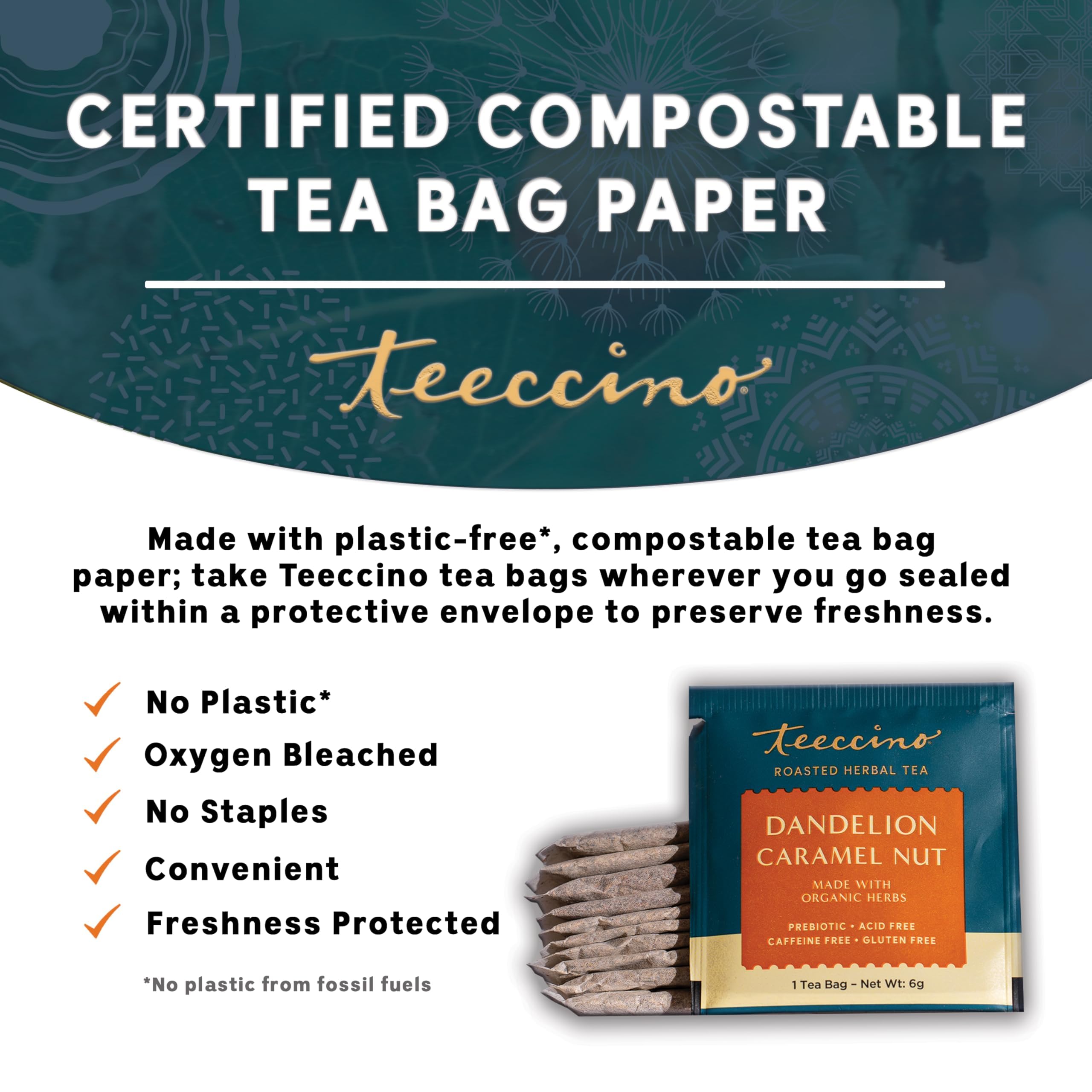 - 3X MORE HERBS – Teeccino?s 6g tea bag holds three times more herbs than standard tea bags which increases its benefits for maximum wellness in your cup. No artificial flavors, chemicals, MSG, or preservatives. Non-GMO, organic herbs.