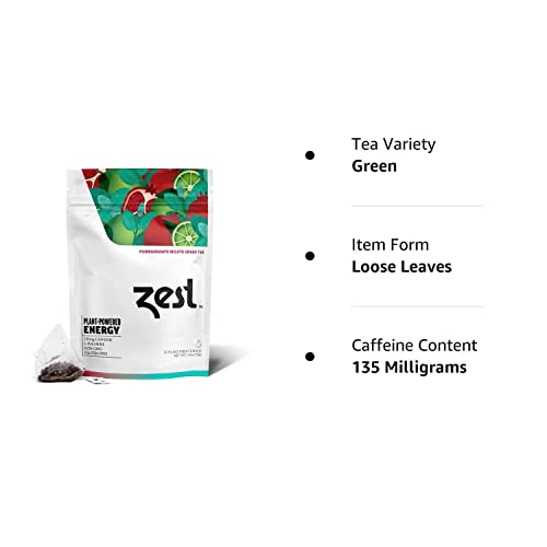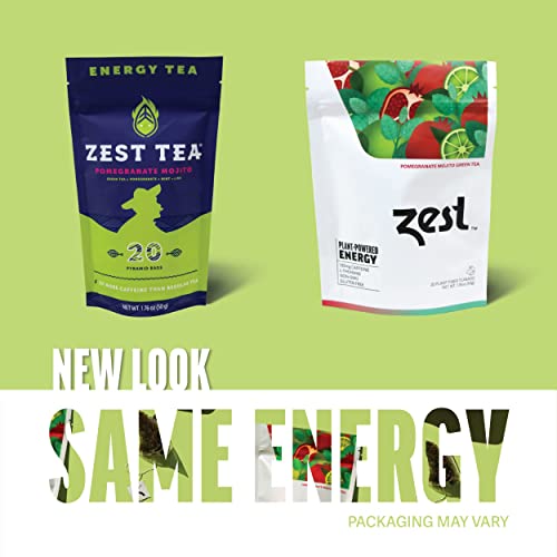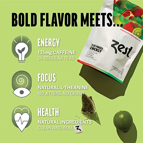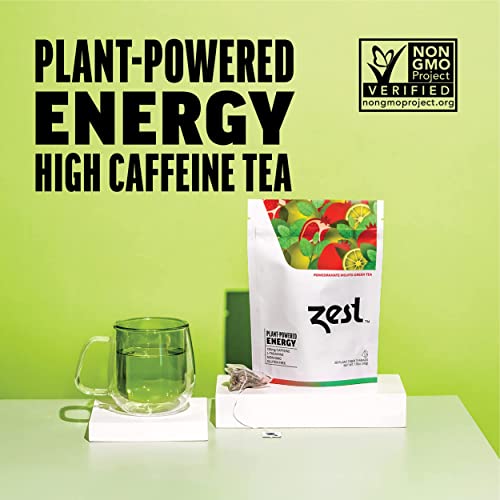Zest 135mg High Caffeine Energy Leaf Blend – Pomegranate Mojito Green Tea – 20 Pack Bag – All Natural Strong Flavored Healthy Coffee Alternative Highly Caffeinated Substitute – Perfect for Keto