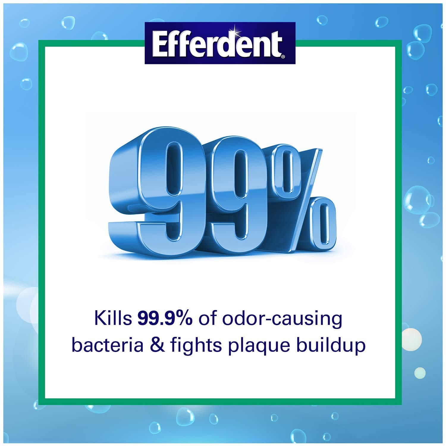 Efferdent plus denture cleanser keeps dentures extra fresh and clean with minty flavor boosting ingredients. Its unique effervescence powers away tough stains and penetrates hard to reach places. Efferdent plus denture cleanser is specially formulated to fight plaque build-up and kill 99.9% of odor-causing bacteria, so you’re ready to go out and enjoy life knowing your dentures are crystal clean. Be your effervescent self.