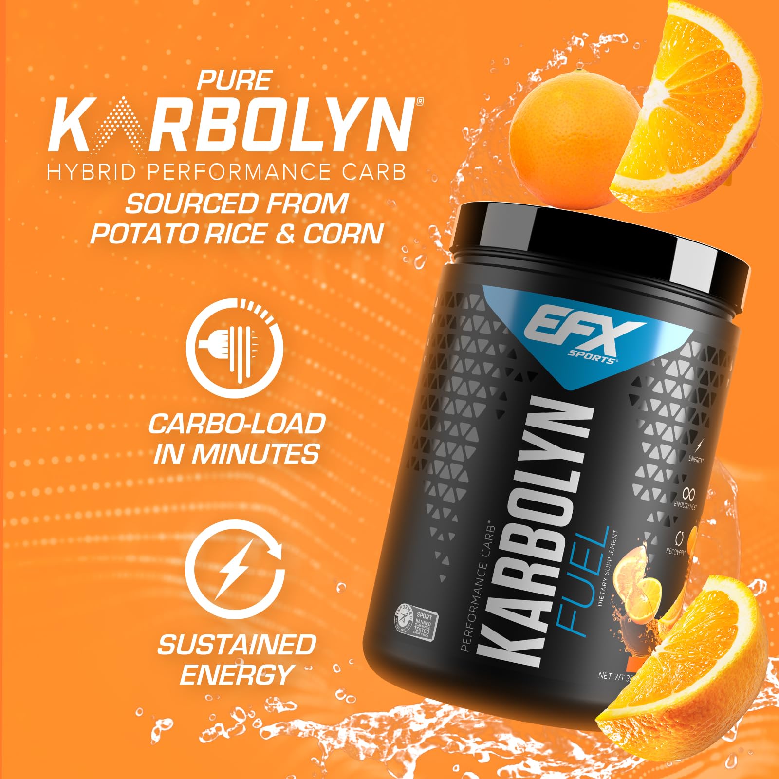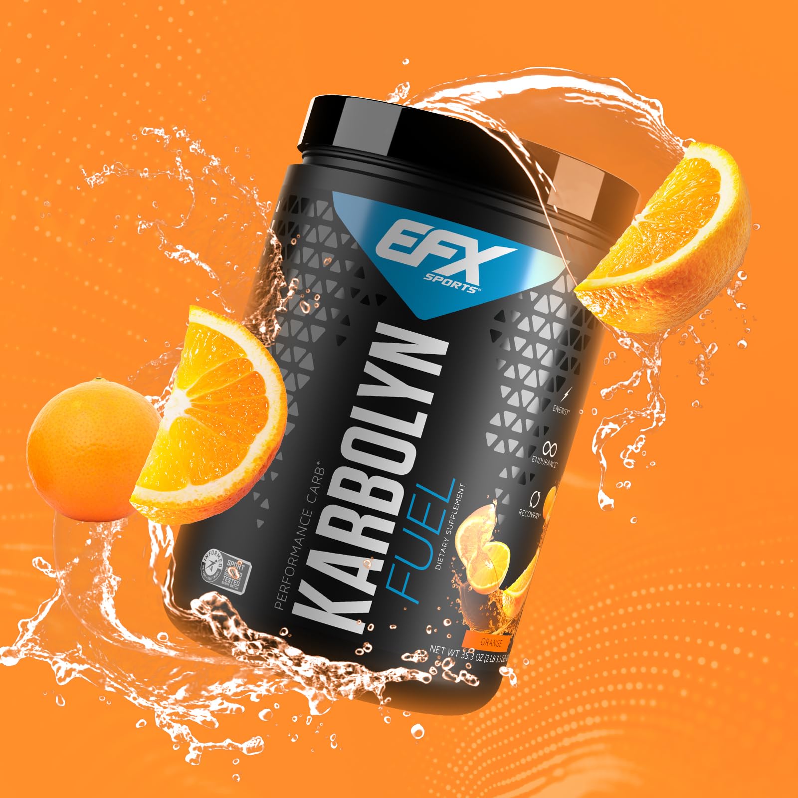 EFX Sports Karbolyn Fuel | Fast-Absorbing Carbohydrate Powder | Carb Load, Sustained Energy, Quick Recovery | Stimulant Free | 18 Servings (Orange)