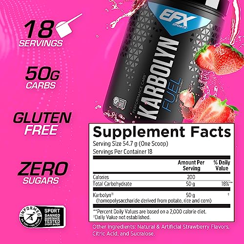 EFX Sports Karbolyn Fuel | Fast-Absorbing Carbohydrate Powder | Carb Load, Sustained Energy, Quick Recovery | Stimulant Free | 18 Servings (Strawberry)