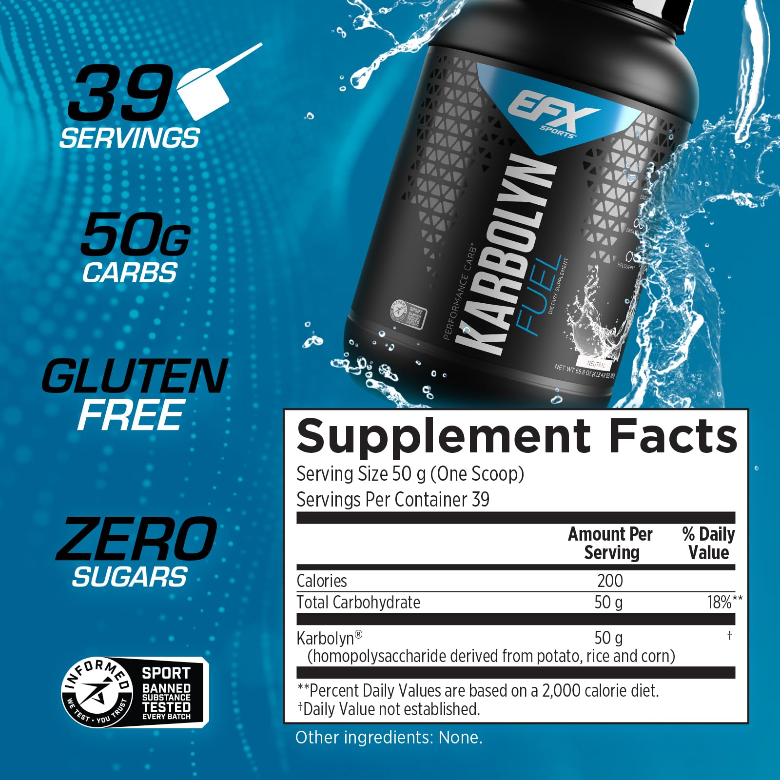 - MANUFACTURED IN-HOUSE: EFX Sports is part of a very small, elite group of brands who actually make their own products. That?s why we guarantee Karbolyn always meets label claims and is 100% banned-substance free (certified by Informed Sport). With Karbolyn, you’ll know you have a pure and potent carbohydrate product.