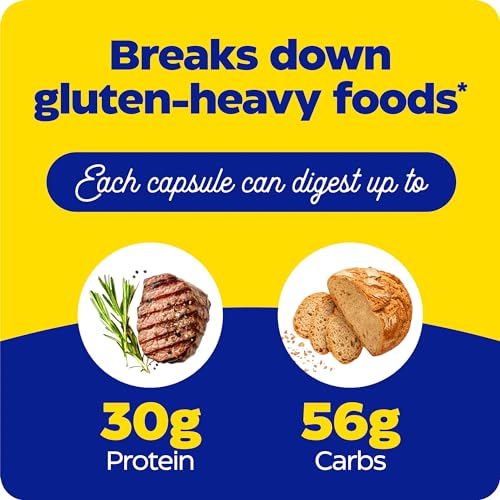 • For Gluten-Heavy Foods: Contains enzymes that help break down gluten-heavy foods, like bread, pasta & grains*; Each serving can digest up to 30g protein and 56g carbs (many variables influence digestive results)*