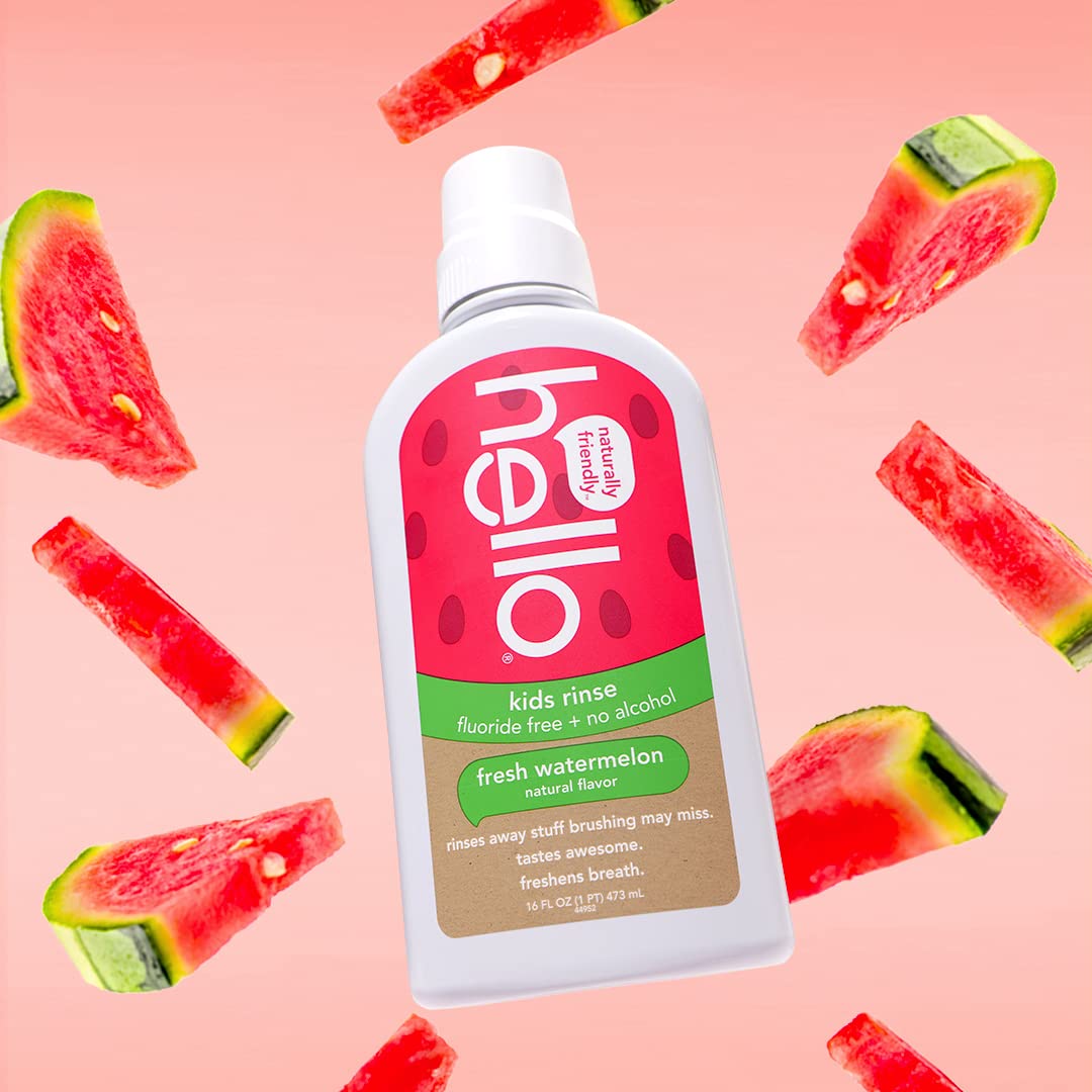 - Hello naturally friendly kids natural watermelon fluoride free rinse is thoughtfully formulated with natural watermelon flavor, soothing aloe vera and high quality sweeteners