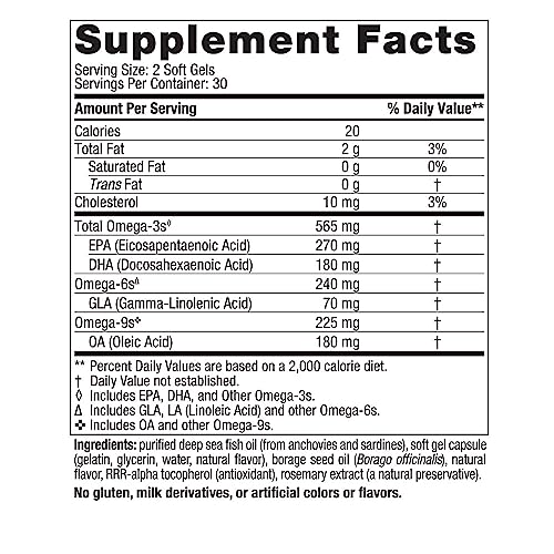 - WHY COMPLETE OMEGA – This formula blends omega-3 EPA + DHA from cold-water fish with GLA (gamma linolenic acid) & oleic acid (omega-9) from cold-pressed borage seed oil. It?s a perfectly balanced combination of omegas 3, 6 & 9.