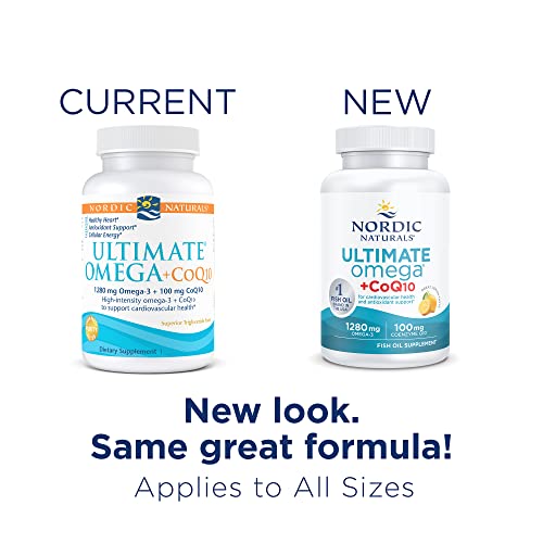 Nordic Naturals Ultimate Omega + CoQ10, Lemon – 60 Soft Gels – 1280 mg Omega-3 + 100 mg CoQ10 – Heart Health, Cellular Energy, Antioxidant Support – Non-GMO – 30 Servings