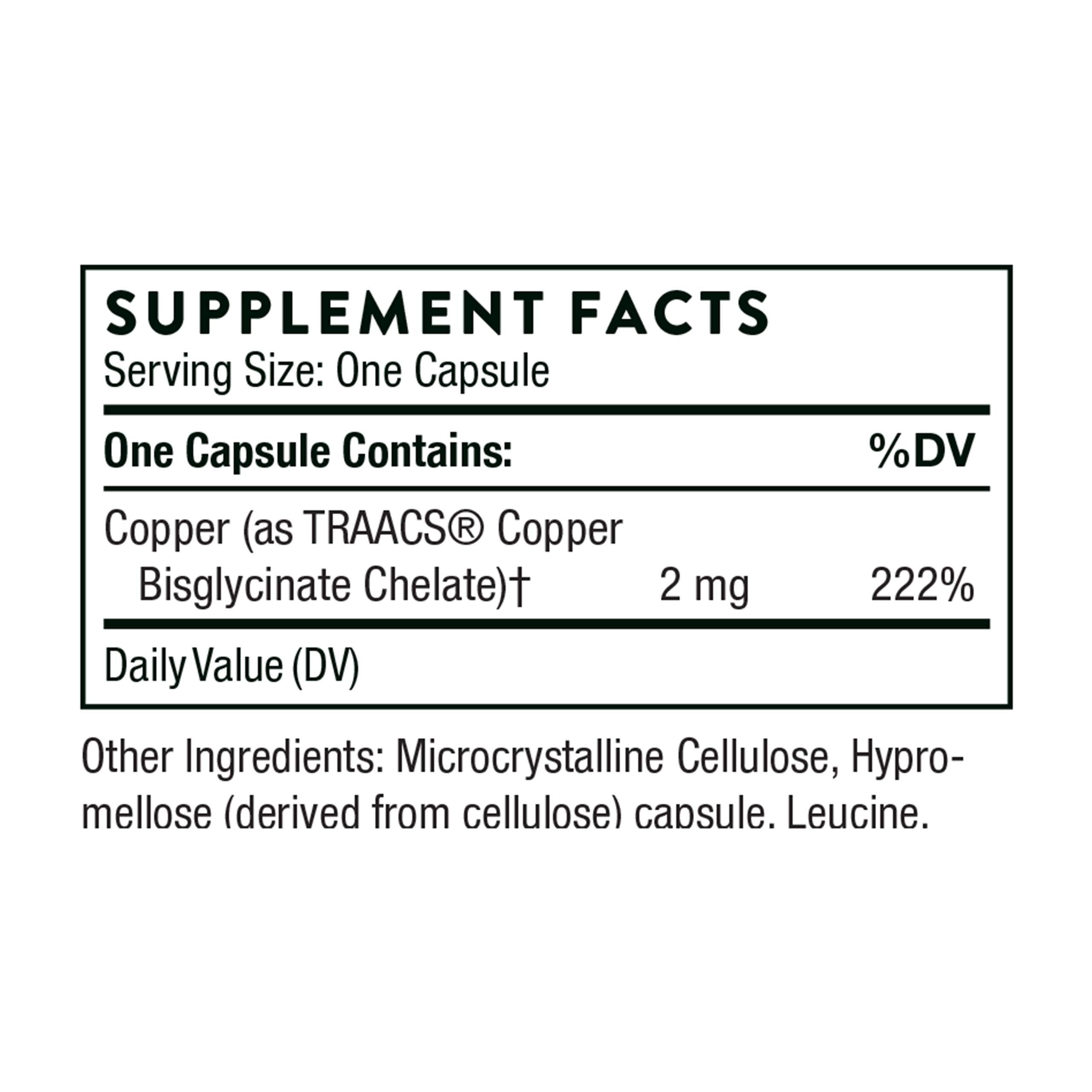 Thorne Copper Bisglycinate – Well-Absorbed Trace Mineral Supplement – 60 Capsules