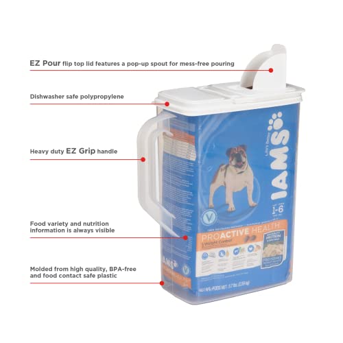 - EZ Grip Handle – The handle on this container makes it easy to lift and pour your pet?s food. Its strong enough and comfortable enough to ?handle? any bag of food.