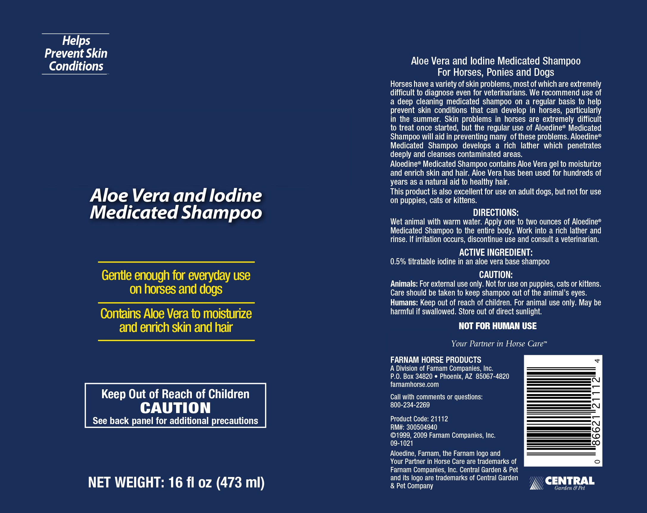 Farnam Medicated Shampoo with Aloe Vera and Iodine | Moisturizing and Gentle | for Horses, Ponies and Dogs | 16 oz